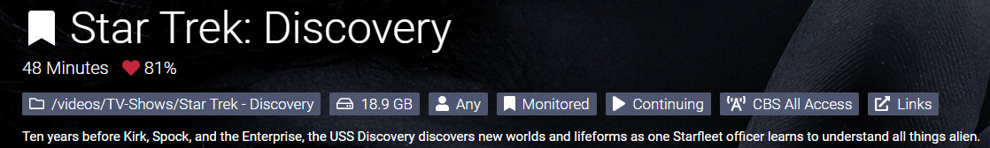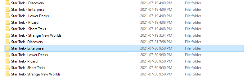 This is renamed to replace the colon with a hyphen to “Star Trek- Discovery” because a colon is not a valid filename/directory name character in many filesystems.