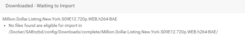 so just recently i noticed an episode being downloaded for Million Dollar Listing and it was automatically moved over to proper location, yet sonarr showing that it can not be imported as files are missing.