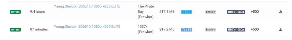 2023-03-31 06:47:37.8|Debug|DownloadDecisionMaker|Processing release ‘Young.Sheldon.S06E16.1080p.x265-ELiTE’ from ‘The Pirate Bay (Prowlarr)’