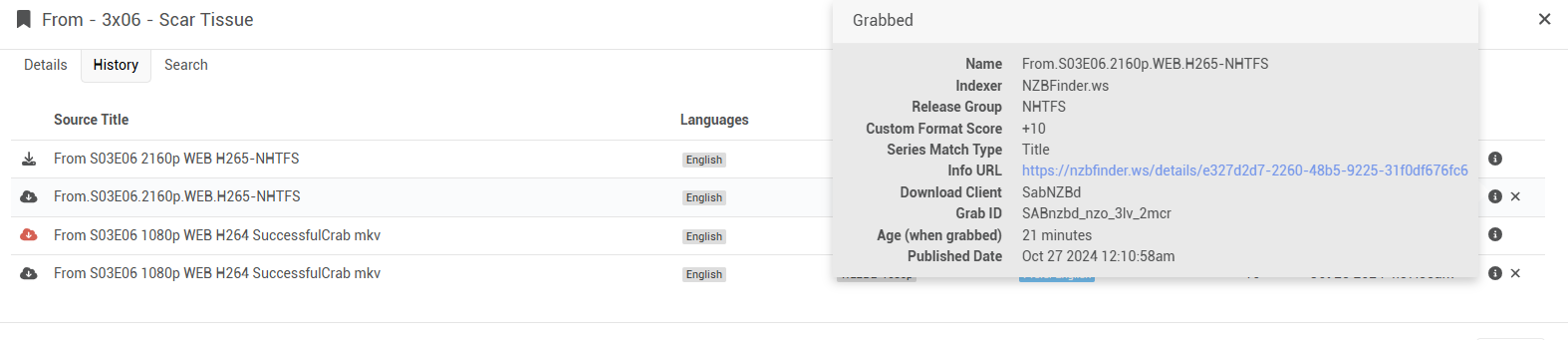 I do believe you might have hit the nail on the head about RSS. I just got Tracker S01E05 and it’s over 900 megs for 42 minutes, and The Equalizer S05E03 902 megs for just under 42 minutes. Now The Penguin S01E07 is 592 for 46 minutes which is within the range I set. I did the interactive search to check it and sure enough Tracker and The Equalizer are rejected for size there. Now I just need to know if I can see if any if not all of these were grabbed by RSS feed or if by chance it has more to do with the particular SYNCOPY group. Awhile back there was a group that did supposed 512 files, but they were actually always 1.5 to 3 gigs even though Sonarr claimed they were only 512 megs. That I’m sure was the release group cause I’d go to the site it was grabbed from and it would say the file was 512 megs. If it’s the RSS can I just disable that? Thanks for the help, muchj appreciated.
