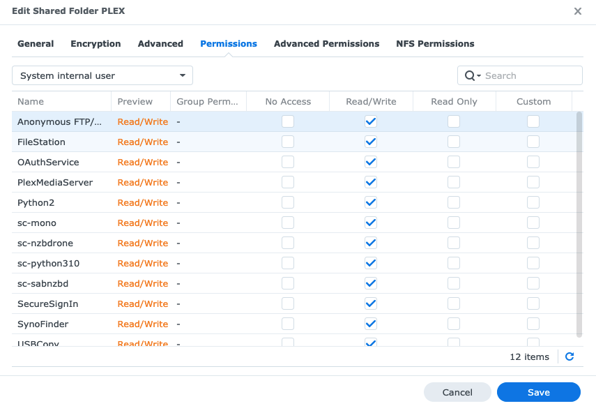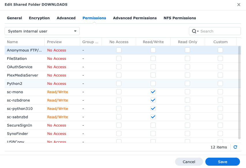 Additionally, I’ve given read & write access to sc-nzbdrone, sc-mono, and sc-sabnzbd for my downloads folder where that SABnzbd is directed to as well as to my Plex folder where all of my media lives and my root path in Sonarr is directed to.
