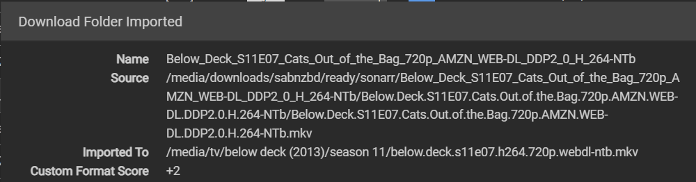 regarding the custom format, its included below. the final entry for “strm” (the custom formats name) is included so that it will score the on disk filename the same way as it would the original values that are not available there.
