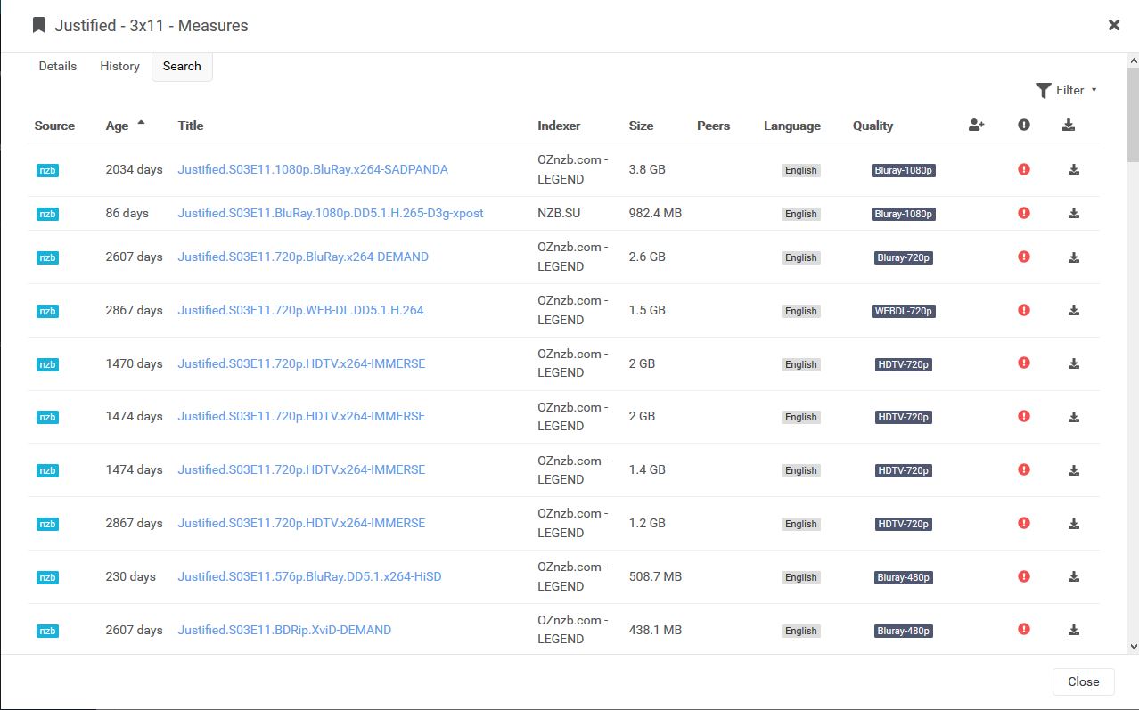 When performing an interactive search, I tried to sort by date, size, and the sort order is wrong…