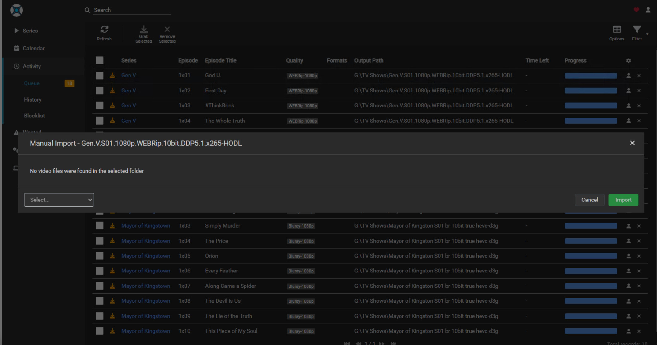 But sonarr doesn’t seem to be pulling those files FROM my seedbox TO my local machine. I just get "“No video files were found in the selected folder”