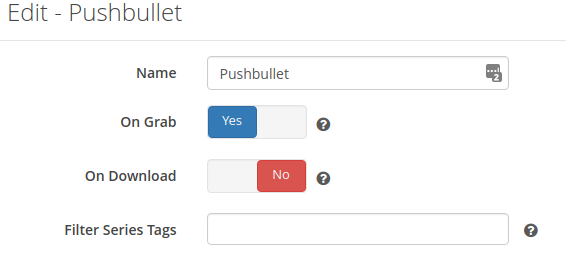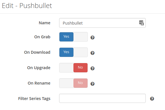 No. I’ve enabled On Download, disabled everything under it, and then disabled On Download. I’ve also disabled and re-enabled On Grab, as well as deleting the connection entirely and re-adding it. It’s weird, On Grab is highlighted green but it’s not notifying for it. Only completed downloads are notifying, which I don’t really want any longer.
