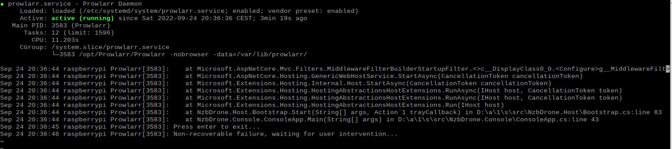 Since today, Prowlarr isn’t starting anymore.