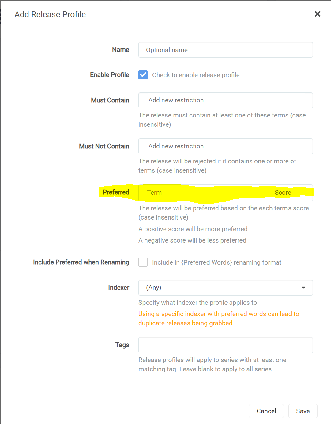 I have used this previously when I specifically wanted “HDR” or “DV” on a specific series. In my case I used “Must Contain” but it seems you are okay with x264 if it is the only version available so you would do it with “Preferred” weighted terms. It should work although I have not tried it myself.
