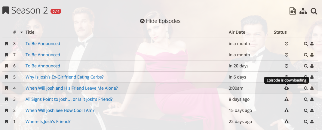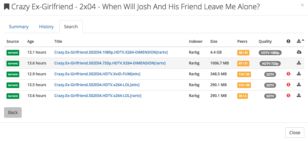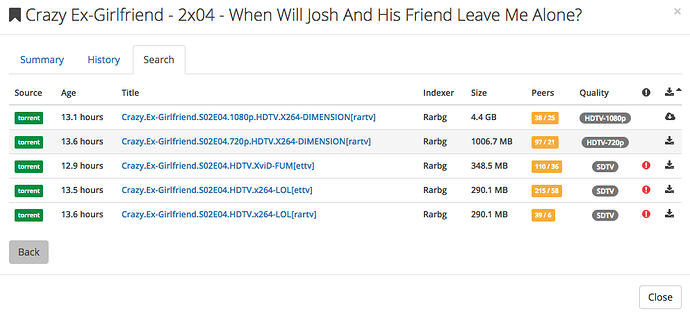 For example Sonarr searched for the newest episode of Crazy Ex-Girlfriend S02E04:
