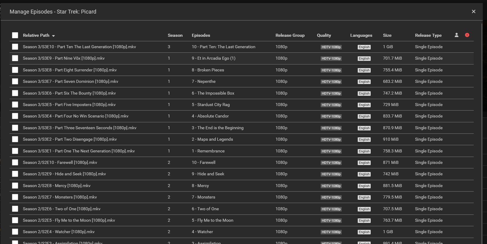 If i click on Manage Episodes I can see the all files and if I select ones and click delete it will delete on the file system.