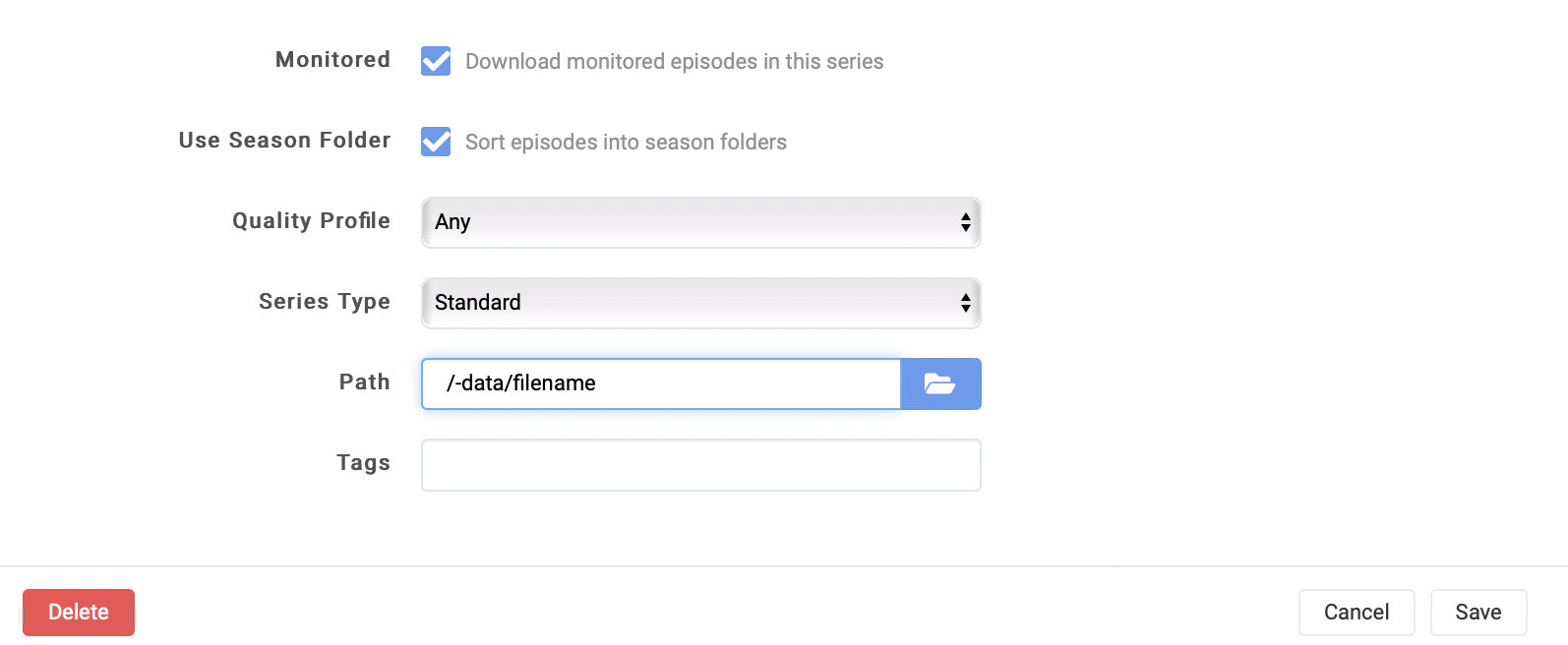 - new error: Series’ root folder (/Users/pixelrogue/MediaCenter/raw) doesn’t exist.