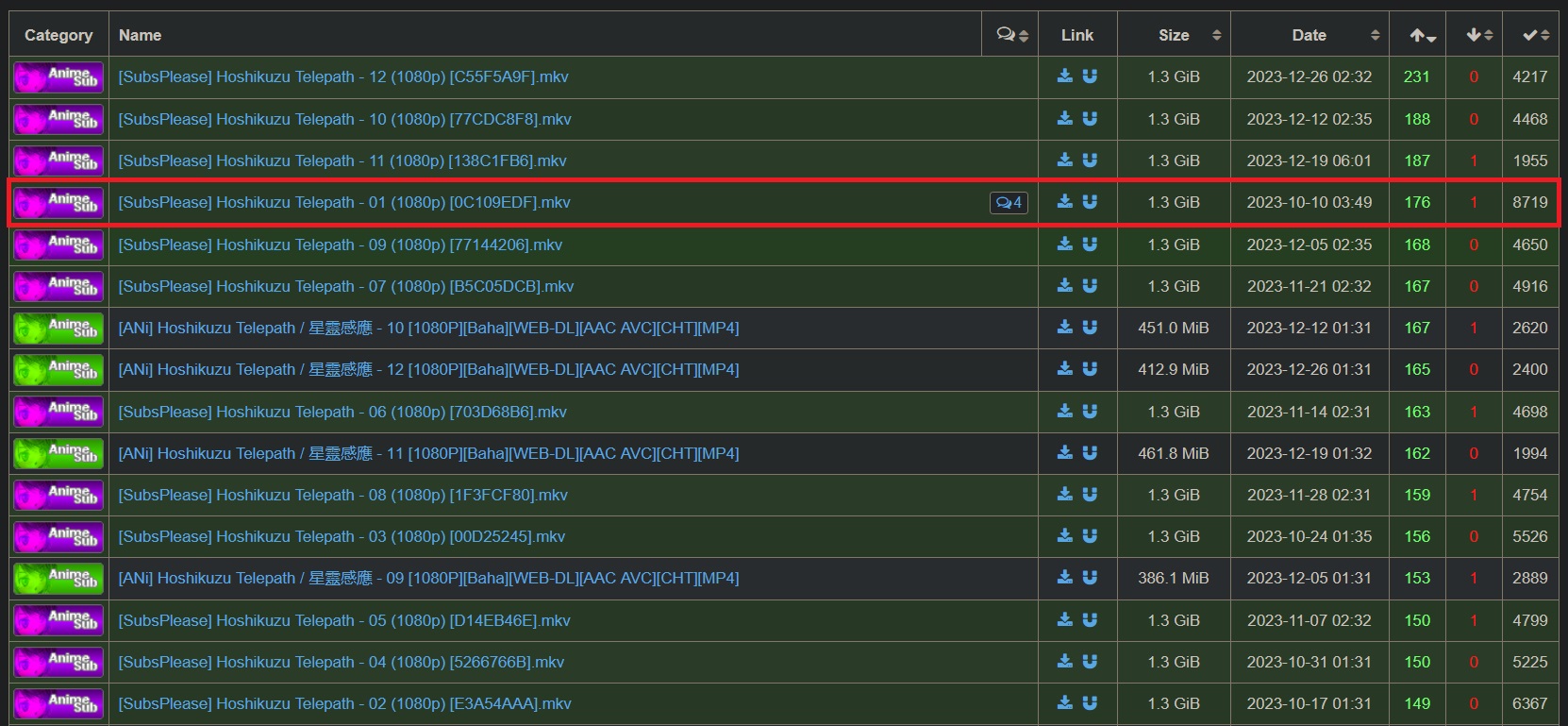 So by default, when searching for Hoshikuzu Telepath the result you want is on the fifth page, which isn’t going to be returned as Jackett/Prowlarr only fetches the first page for keyword searches.