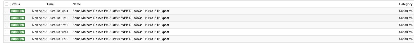 After a few days and grabbing a fresh test series. The only one that is DL in NZBGet is the sonarr-V4. I don’t see my old “series” category showing up…