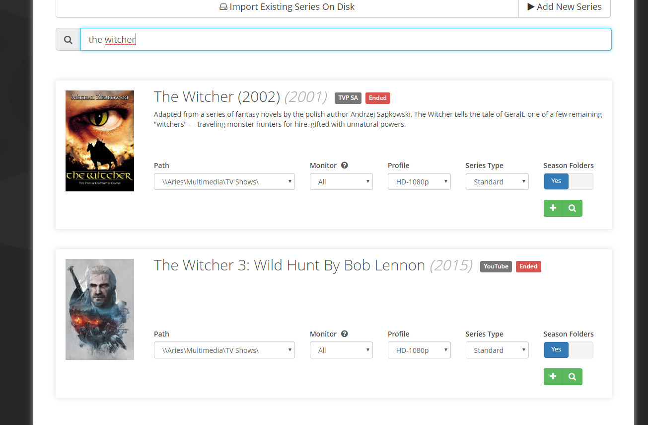 The Witcher (2019) is not searchable in Sonarr